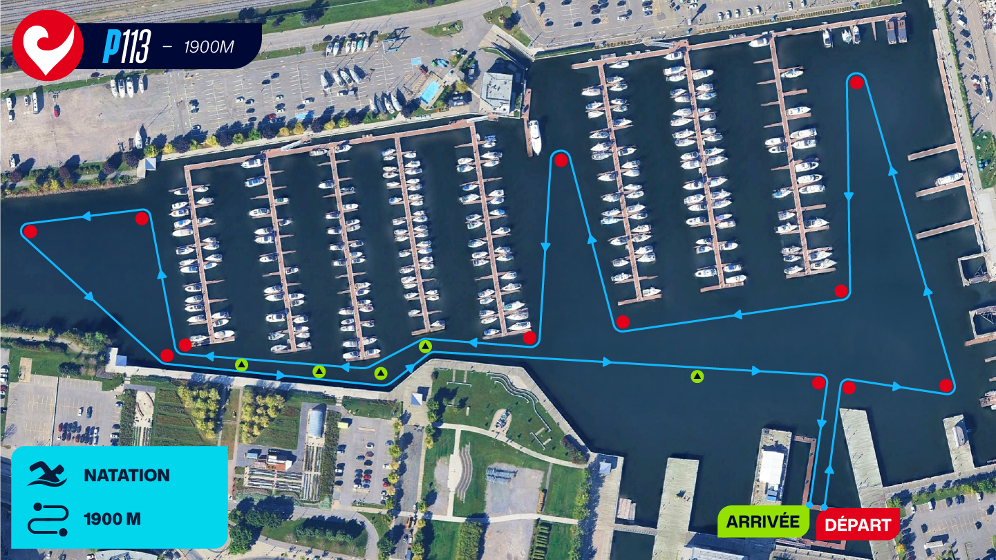 Découvrez notre nouveau parcours de nage optimisé! Vous plongerez dans les eaux calmes de la marina du Port de Québec, sous les yeux de vos proches qui pourront suivre facilement cette portion de votre triathlon grâce aux nombreux points de vue.
